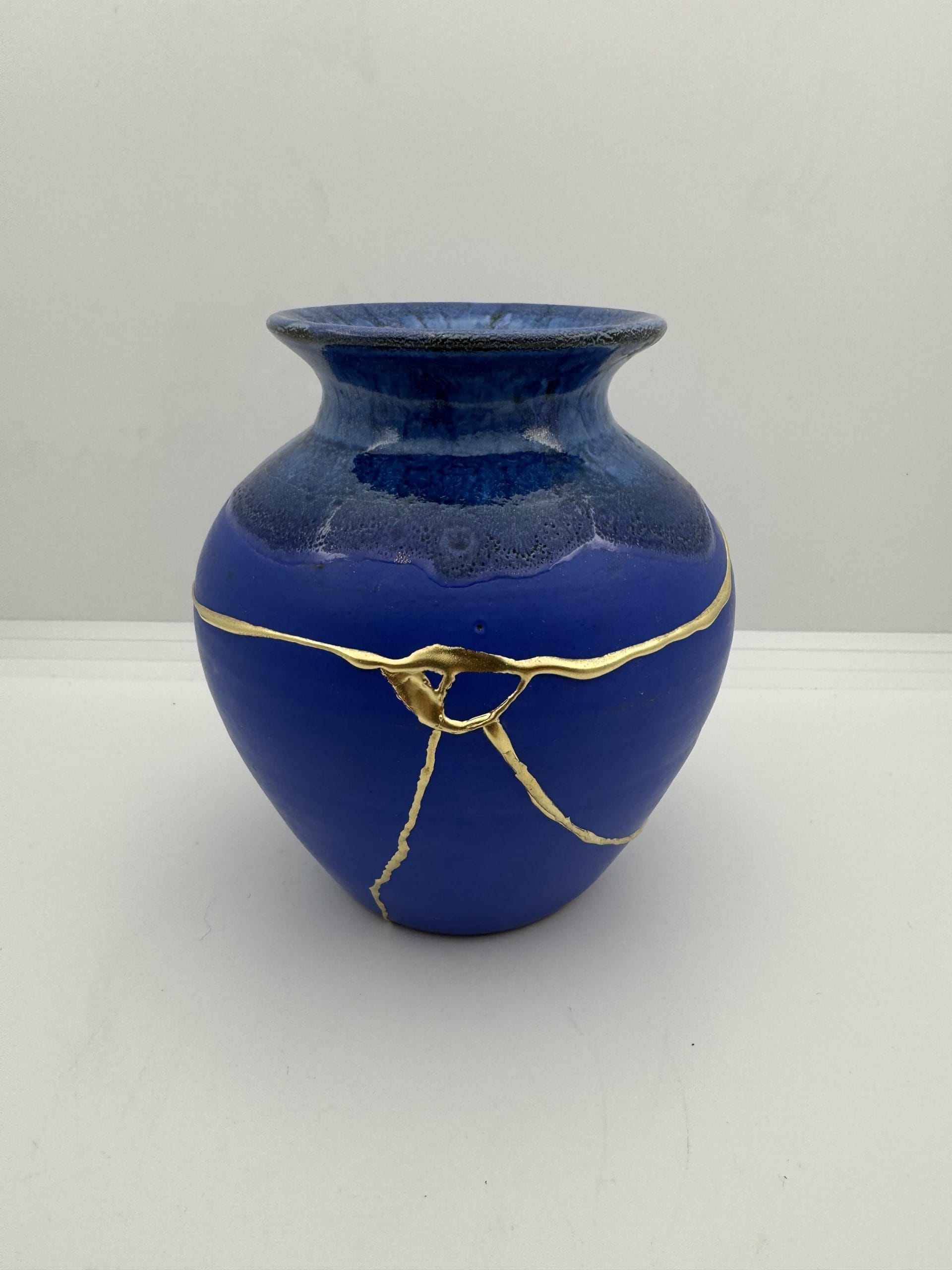 Kintsugi vaas – Ultramarijn blauw met gouden lijnen